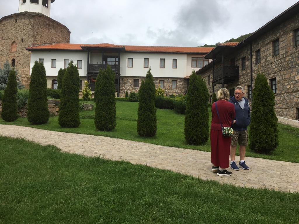 The church remains to this day. It is still an active community belonging to the Macedonian Orthodox Church. Different to other monasteries that we have visited such as Pantelej and Krika Palanka and Monastery Sveti Joakim Osogovski here the rules on entering are a lot stricter and women as required to wear long skirts, even over long trousers, these skirts are provided at the entrance to the monastery. The other point to note is that male visitors are not allowed to enter the church with shorts on, although my son-in-law was not denied entry but my brother-in-law was, I think it must depend on who is on duty to receive visitors at that time. But fair play, we respected their beliefs and my sister and I donned a skirt and as my brother-in-law enjoyed the grounds, we went into the church.