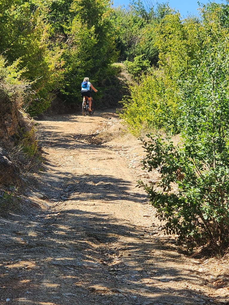 We joined the road and enjoyed a freewheeling ride all the way back to the village. However, freewheeling isn’t as relaxing as it might seem, especially on an uneven road with hairpin bends and no visibility of oncoming traffic. While we were more likely to encounter a slow tractor than many vehicles climbing the mountain, the wind in our hair and the sense of freedom made it all worthwhile.